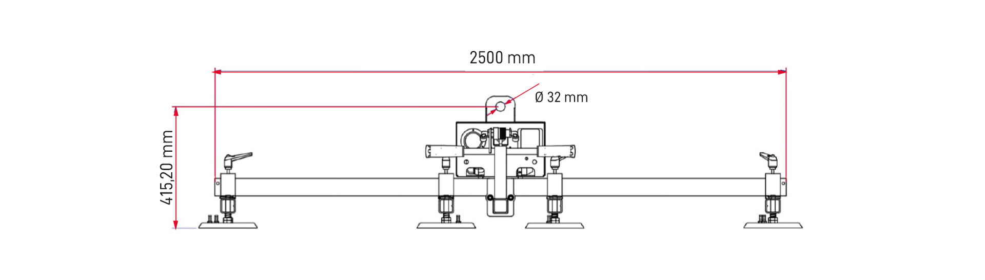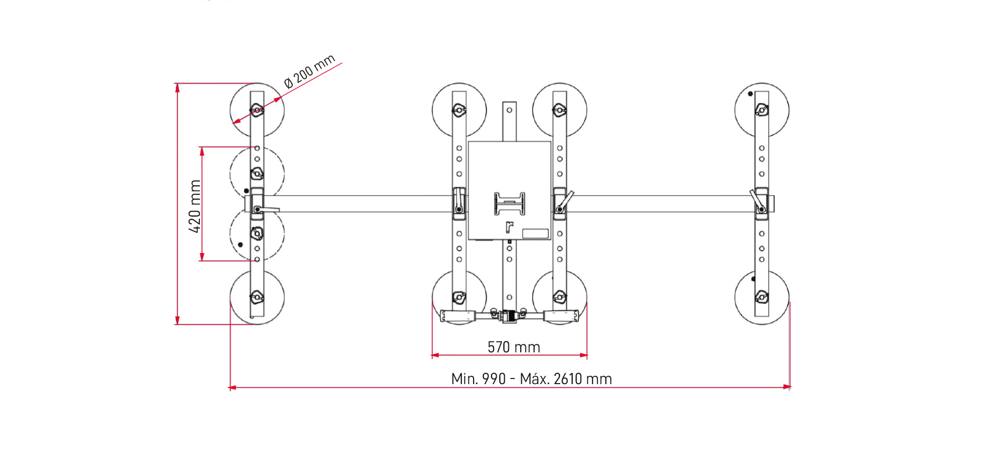 Permite ajustar facilmente a posição das ventosas ao longo da viga sem necessidade de ferramentas, adaptando-se a diferentes dimensões de chapa. -