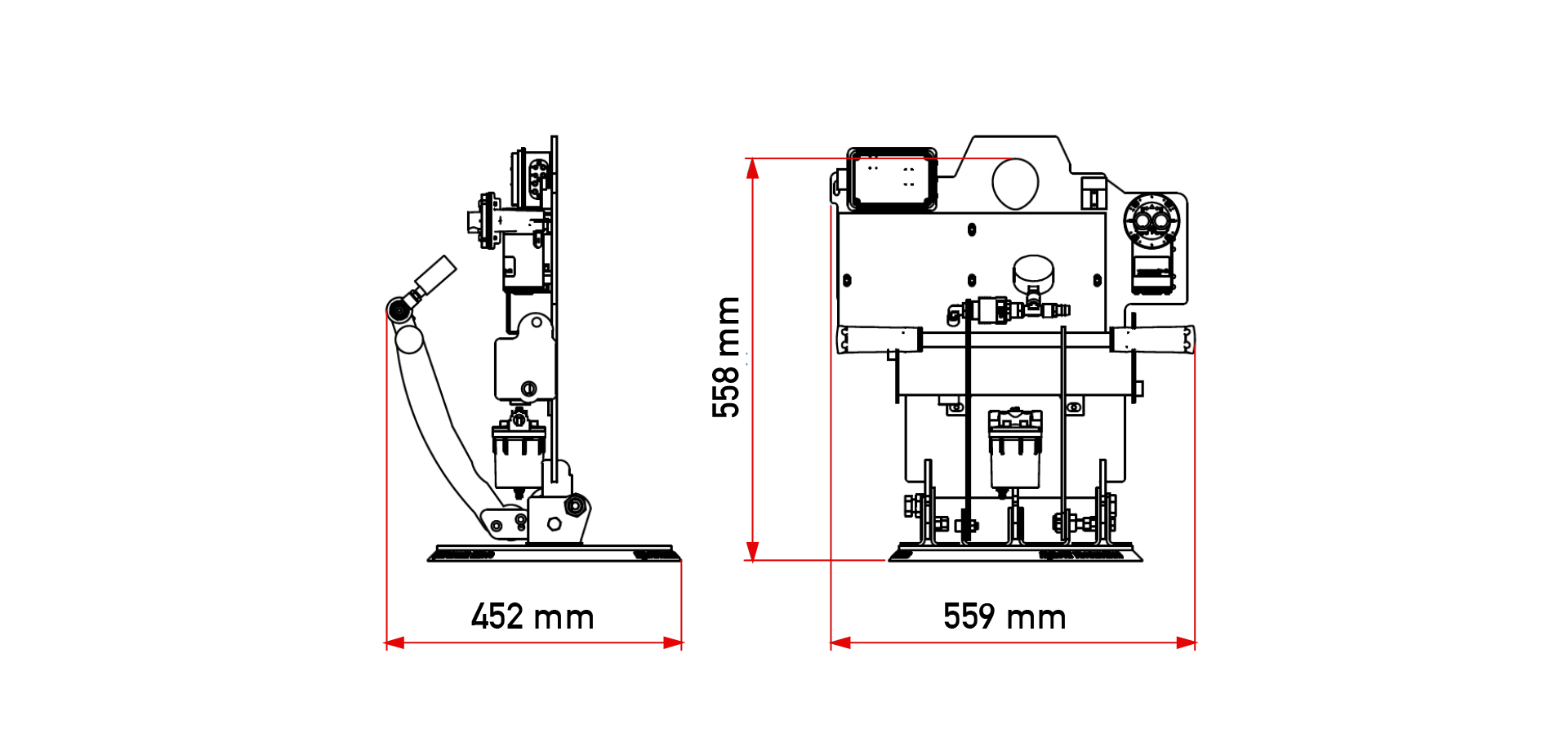 Emite sinais sonoros e luminosos em caso de falhas de vácuo ou funcionamento anómalo, garantindo a segurança da operação. - Ventosas em borracha vulcanizada resistente a óleos, com suporte por mola